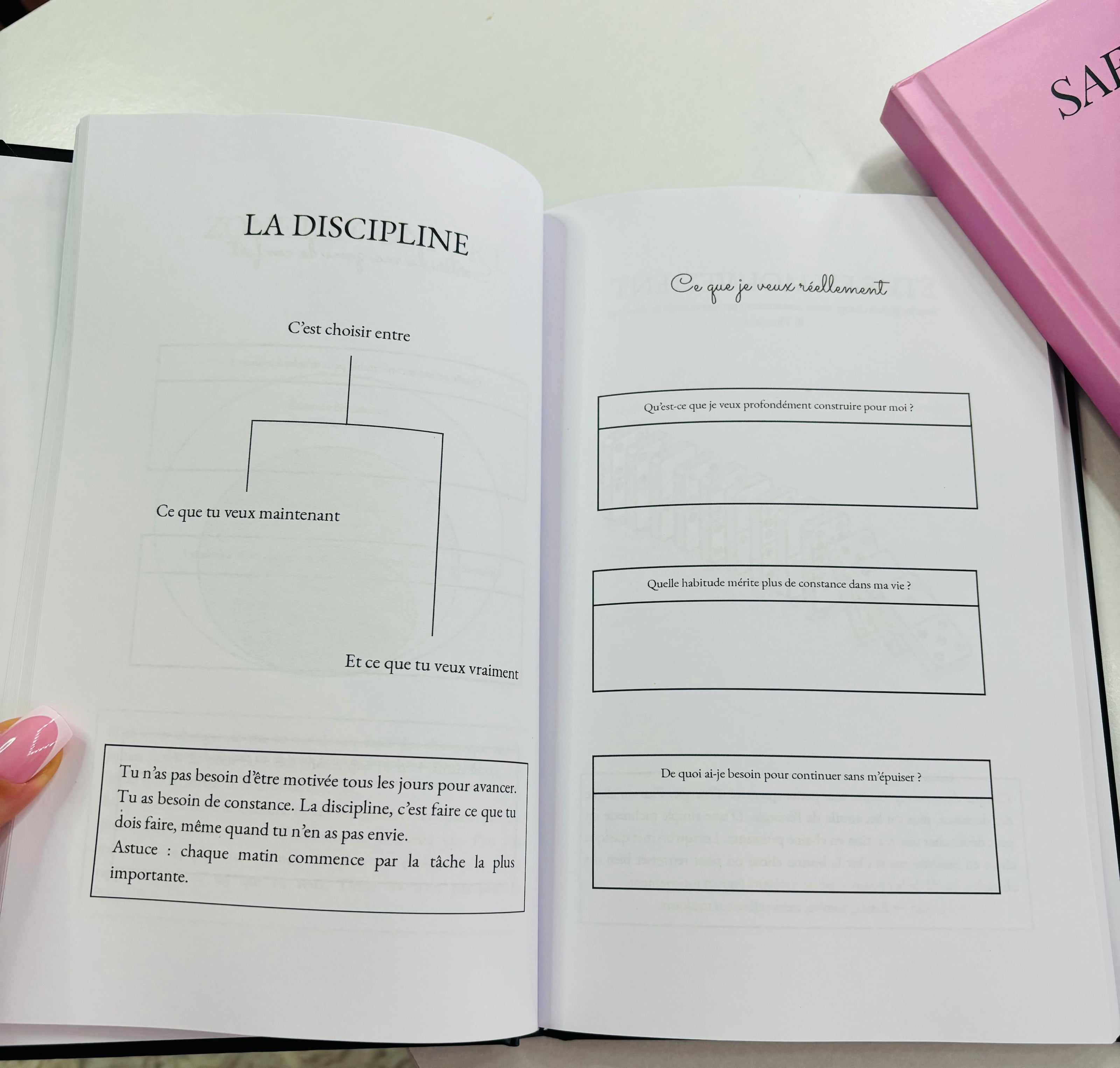 Chaque carnet contient des pages d’introspection guidées, des outils de développement personnel et des espaces d’écriture libre, pensés pour t’aider à te recentrer, t’organiser et passer à l’action.